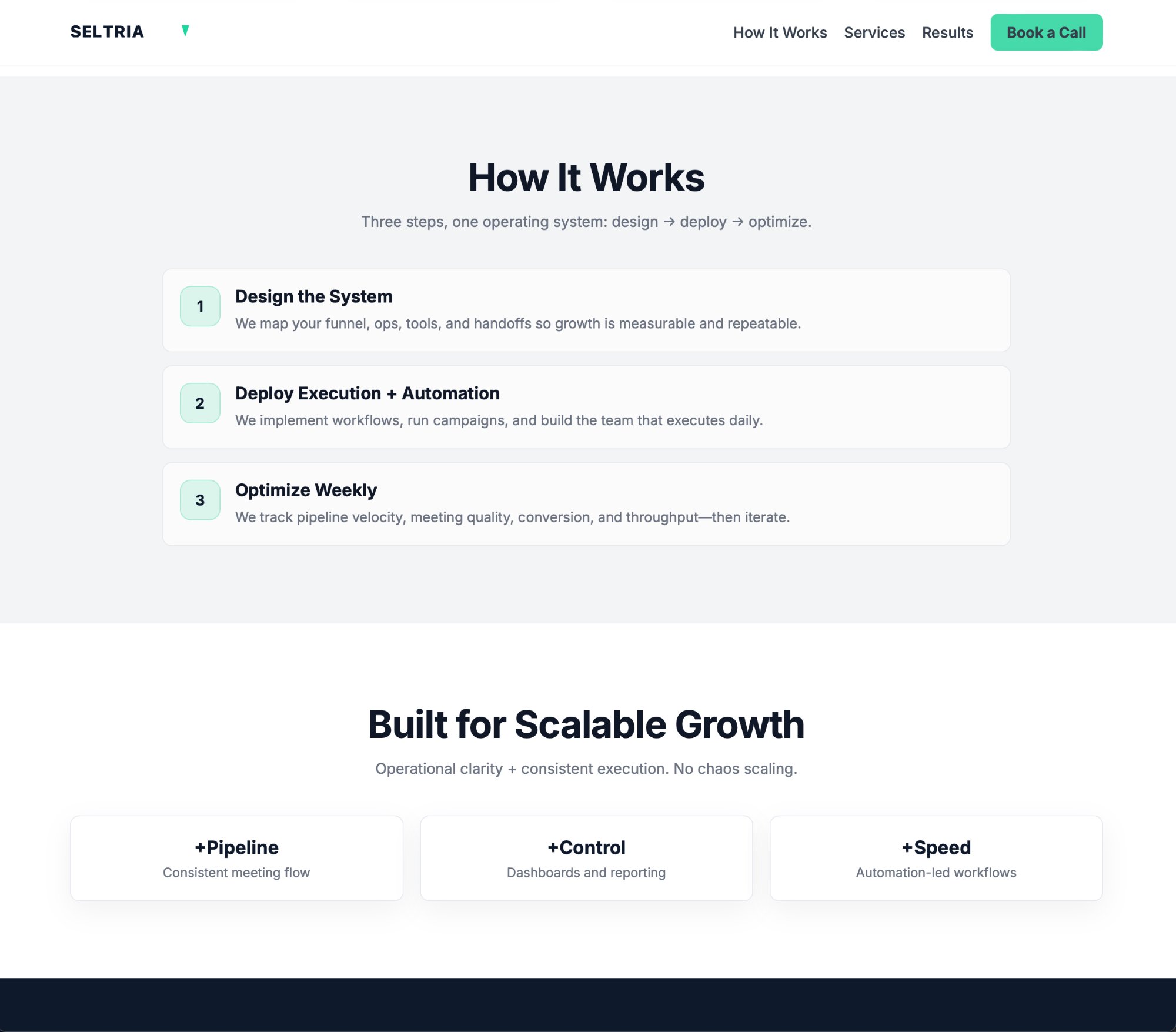 Book a strategy call to discuss your growth goals and see if Seltria is the right fit.